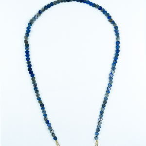 A 40cm beads featuring 4mm round natural stones, with two gold and diamond links.